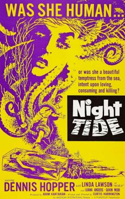 Released one year prior to the atmospheric, surreal horror classic "Carnival of Souls," "Night Tide" is a similarly bizarre film that radiates an odd effect. Johnny (a young Dennis Hopper) falls in love with Mora (Linda Lawson), a sideshow performer who might also be a mermaid with a penchant for murdering her lovers. The performances are adequate and realistic, with Hopper conveying a proper balance of lovestruck awe and confusion; Lawson is fittingly remote and enigmatic. Writer-director Curtis Harrington builds a fair amount of suspense and limits the action to several effective dream sequences, thereby retaining a surreal mood. Not as wild as Jack Hill's "Spider Baby," nor as subtly brilliant as "Carnival of Souls," "Night Tide" is a diverting in-between that's worth a look.